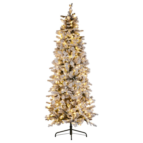 Christabelle Snowy Dorchester Pencil 7.5ft Christmas Tree Pine Cones Twinkling MultiFunctional White LED Lights