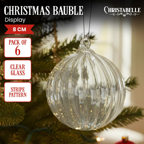 Christabelle Box of 6 Clear Glass Baubles with Stripe Pattern