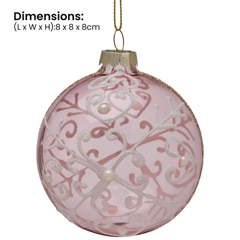 Christabelle Pink Glass Baubles 6Pcs with White Pattern & Pearls Balls Christmas Tree Decoration Ornament