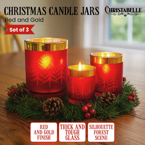 Christabelle Christmas Candle Jar Set of 3 Red and Gold Holiday Candle Holders
