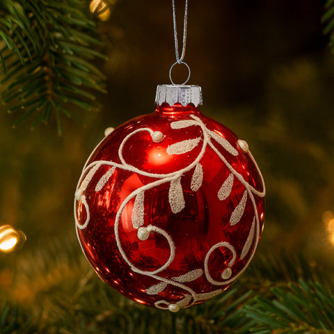 Christabelle Glossy Red Glass Baubles 6Pcs with Swirly Vine Pattern Balls Christmas Tree Decoration Ornament