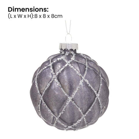 Christabelle Platinum Glass Baubles 6Pcs with Glittered Lattice Pattern Balls Christmas Tree Decoration Ornament