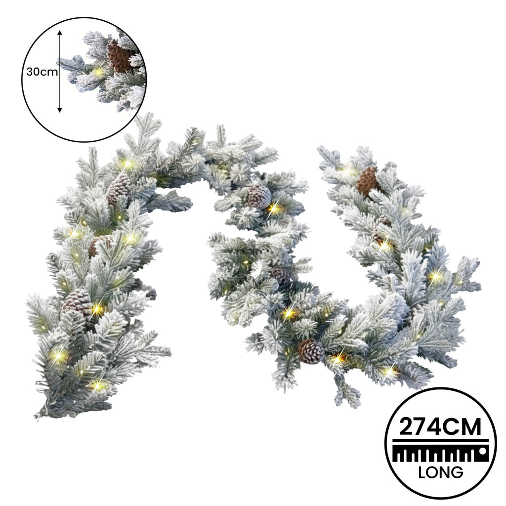 Measuring 274cm (9 feet) in length, this snowy dorchester garland provides ample coverage for shelves, staircases, doorways, or any area that needs a festive makeover along with a gorgeous wintry finish to cool the heat of an Aussie Christmas. The length allows you to create beautiful and eye-catching displays that will captivate your guests and evoke the enchanting feeling of Christmas. Plus, its adorned with warm white LED lights carefully woven throughout, along with pine cones for a natural looking finish.
