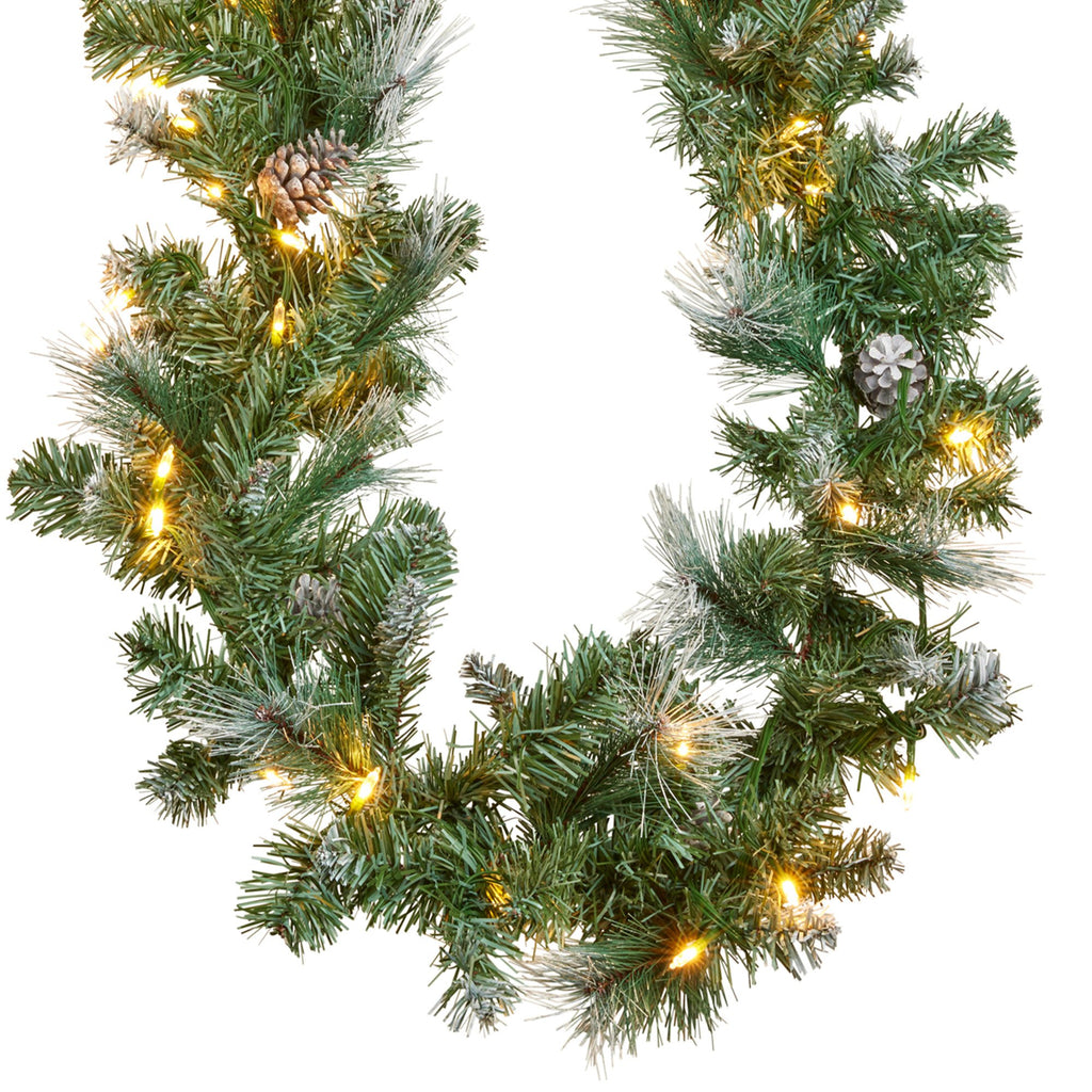 Add a warm glow to your holiday decorations with the Bayville Pine Christmas Garland. This garland comes with 50 warm white LED lights to create a festive atmosphere. With full, natural-looking tips, pine cones, it is perfect for enhancing your festive setup. And being battery-operated you can easily place the garland over mantels, staircases or doorways without needing a nearby outlet. The built-in timer function ensures that the lights off automatically, adding convenience and elegance to your seasonal decorations. Enjoy a beautifully lit and festive home with this stunning garland from Christabelle this Christmas season and for many more. Key Features: